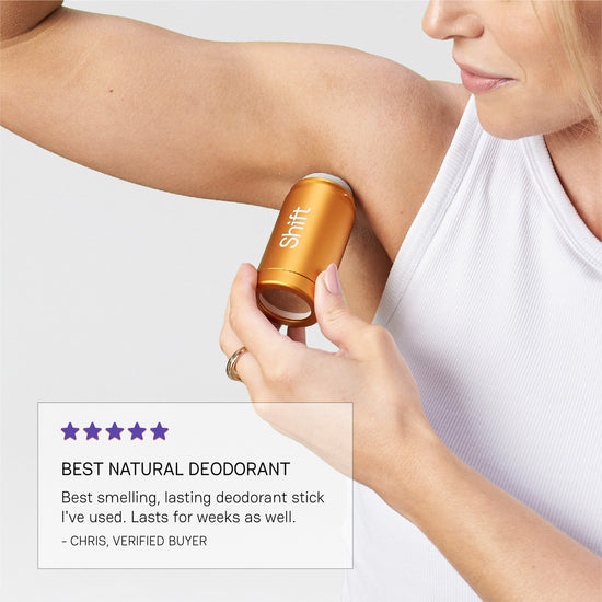 Shift deodorants are made with 100% natural ingredients and essential oils, chosen for their moisturising and moisture absorbing properties. We carefully selected ingredients kind to your skin, so that even with sensitive skin, Shift deodorant performs.